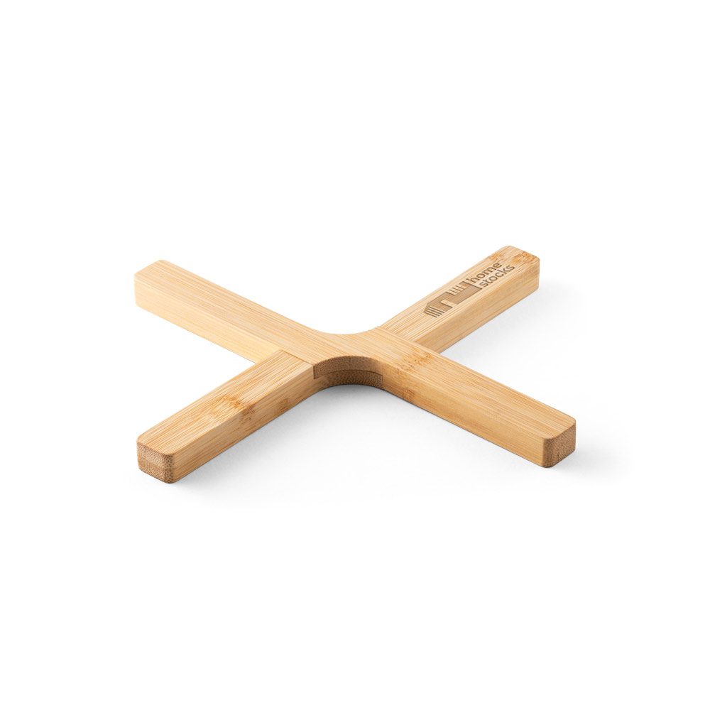Base para tachos dobrável em bambu. Fornecida em caixa de oferta em papel kraft. Por ser um produto composto por materiais naturais, a cor do produto e o resultado da impressão podem variar entre produtos. Fechado: 215 x 40 x 14 mm | Aberto: 180 x 150 x 14 mm