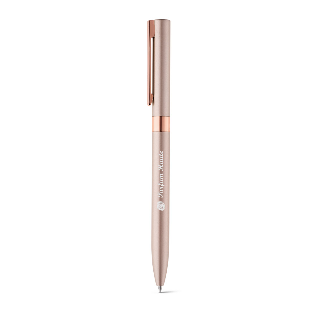 Esferográfica em alumínio reciclado (100% rAL) com mecanismo twist e clipe. Disponível em elegantes cores. Escrita a preto. ø10 x 140 mm