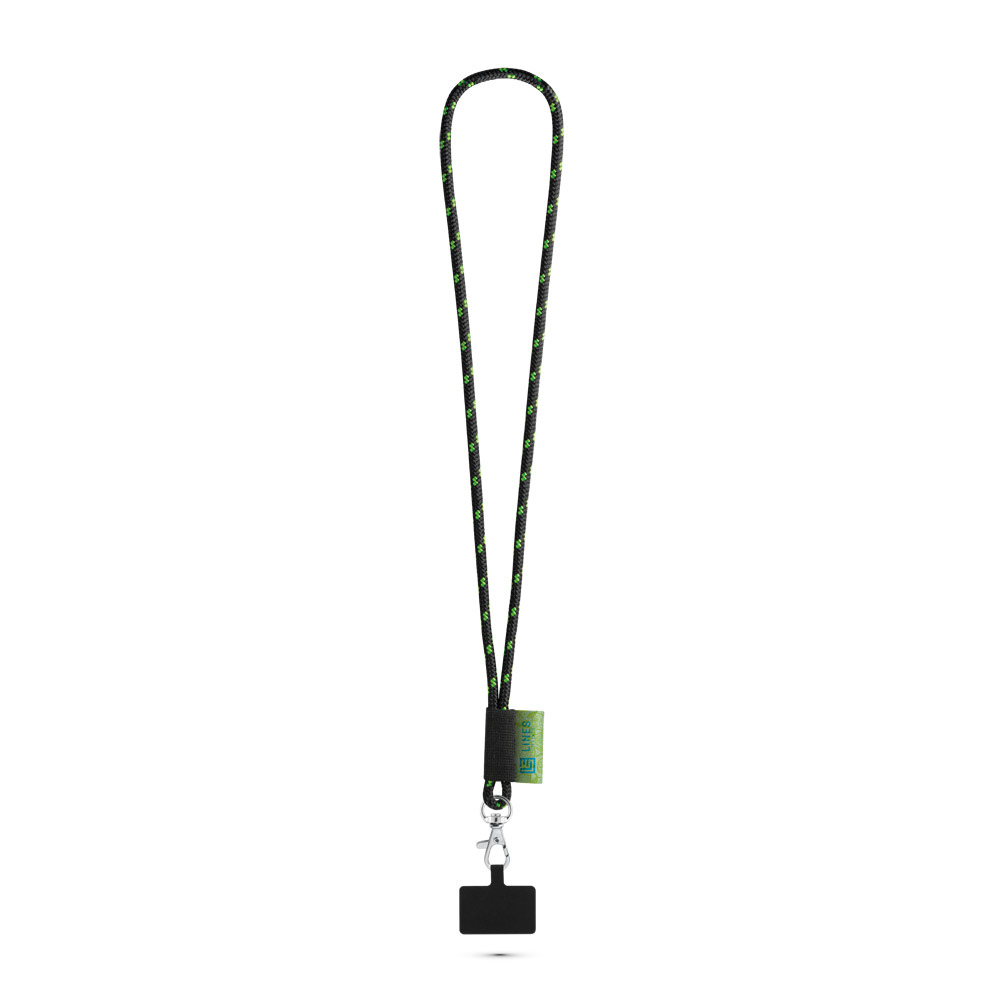 Lanyard personalizada em poliéster. Disponíveis 12 cores standard para personalização. Esta Lanyard Nautic Long inclui os seguintes acessórios e extras: elástico em cor preta, etiqueta em sublimação com 43 x 22 mm, mosquetão standard e suporte para telemóvel 65 x 41 mm. Fabricado na Europa. Preços indicados incluem personalização em sublimação na etiqueta. ø7 x 470 mm